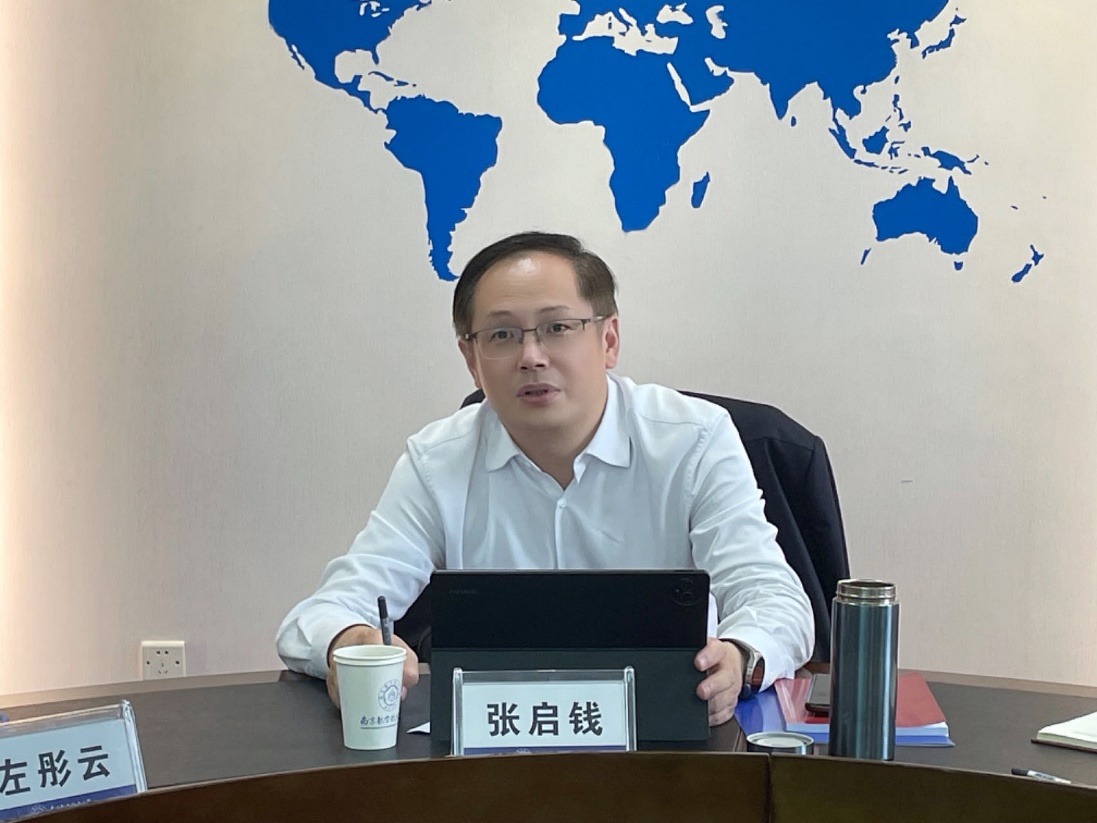副校长张启钱肯定了学院的发展目标和定位,对具体的改革思路和举措给予了指导。他强调,学院党委要坚持以习近平新时代中国特色社会主义思想为指导,严格落实第一议题制度和民主集中制,以高质量党建推进学院高质量发展。要深入学习贯彻党的二十届三中全会精神和全国教育大会精神,全面深化教育教学改革。班子成员要以“三清三明”和“六讲”为指导开展工作,守牢廉洁自律红线底线,担好一岗双责。要重视师德师风建设,做好意识形态领域风险防控。要瞄准国家发展战略,优化学科专业布局,推动外语与其他学科的交叉融合,不断创新人才培养模式,推进博士点建成。要提高人才引进工作质量,加强顶层设计与统筹谋划,不断提升高层次人才引培力度,持续优化师资队伍。要加强智库建设,产出标志性成果,提升咨政咨商成效。要深化合作办学,加强国内外高校联合培养,进一步加大学生国际组织实习的覆盖面,提升学生国际交流项目参与度。张启钱还与班子成员就学校正在谋划的人事制度改革等情况进行了交流。