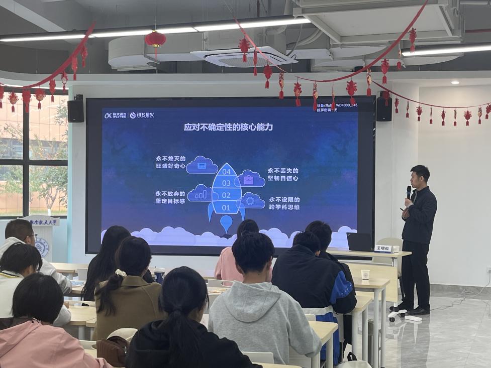 最后,王明松指出当代青年应对不确定性一定要具备四大核心能力,即永不熄灭的旺盛好奇心、永不放弃的坚定目标感、永不丢失的坚韧自信心、永不设限的跨学科思维。