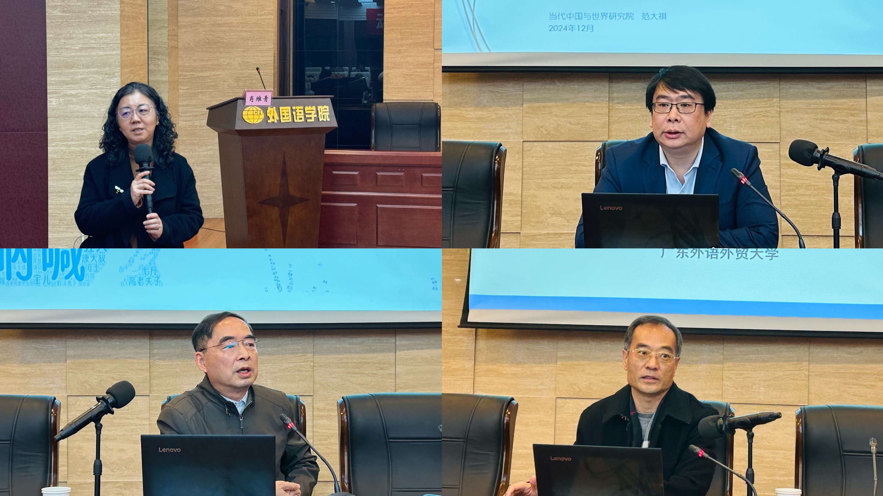 在主旨报告环节,多位翻译领域知名专家分别就为国际化翻译人才培养、人工智能在高校语言教学中的应用、翻译智能体在法律翻译中的构建与应用研究、AI时代翻译人才培养的人文化理念等议题进行重点发言。