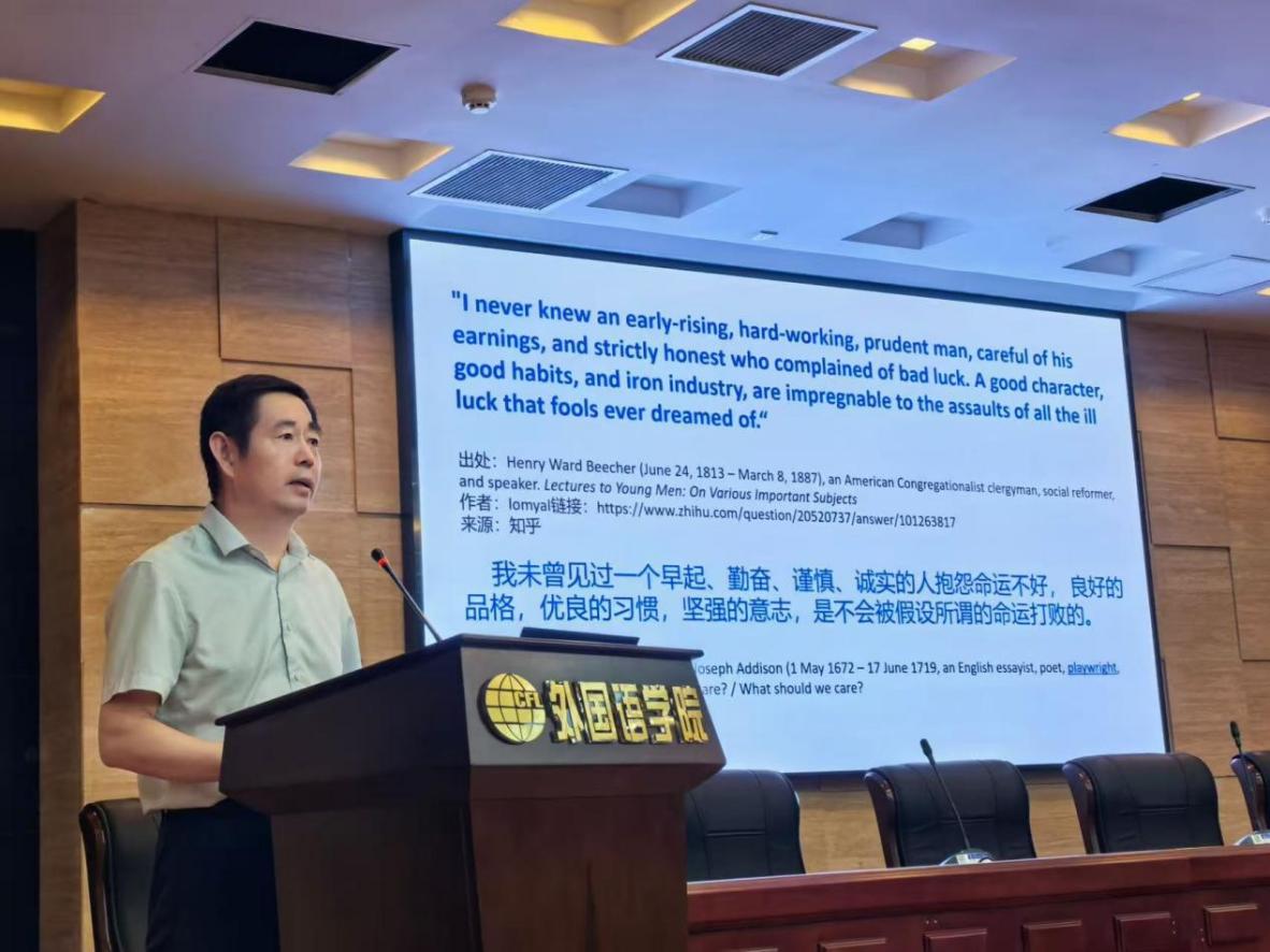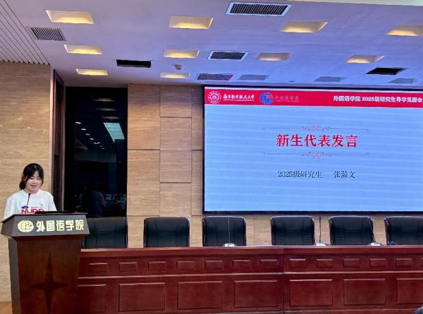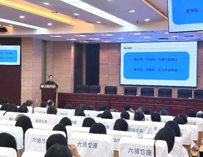 会上,徐以中院长首先致辞。他围绕学院“特色、多元、国际化”发展理念,向2025级同学们介绍学院学科建设、师资力量、科研平台等方面发展情况。此外,他以往届优秀院友为案例,鼓励新生主动走出“舒适区”,扎实掌握外语专业技能,广泛涉猎多领域知识,培养全球视野,为成长为复合型外语人才奠定基础。